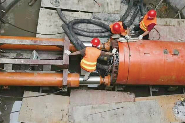 湖南頂管機千斤頂施工現(xiàn)場